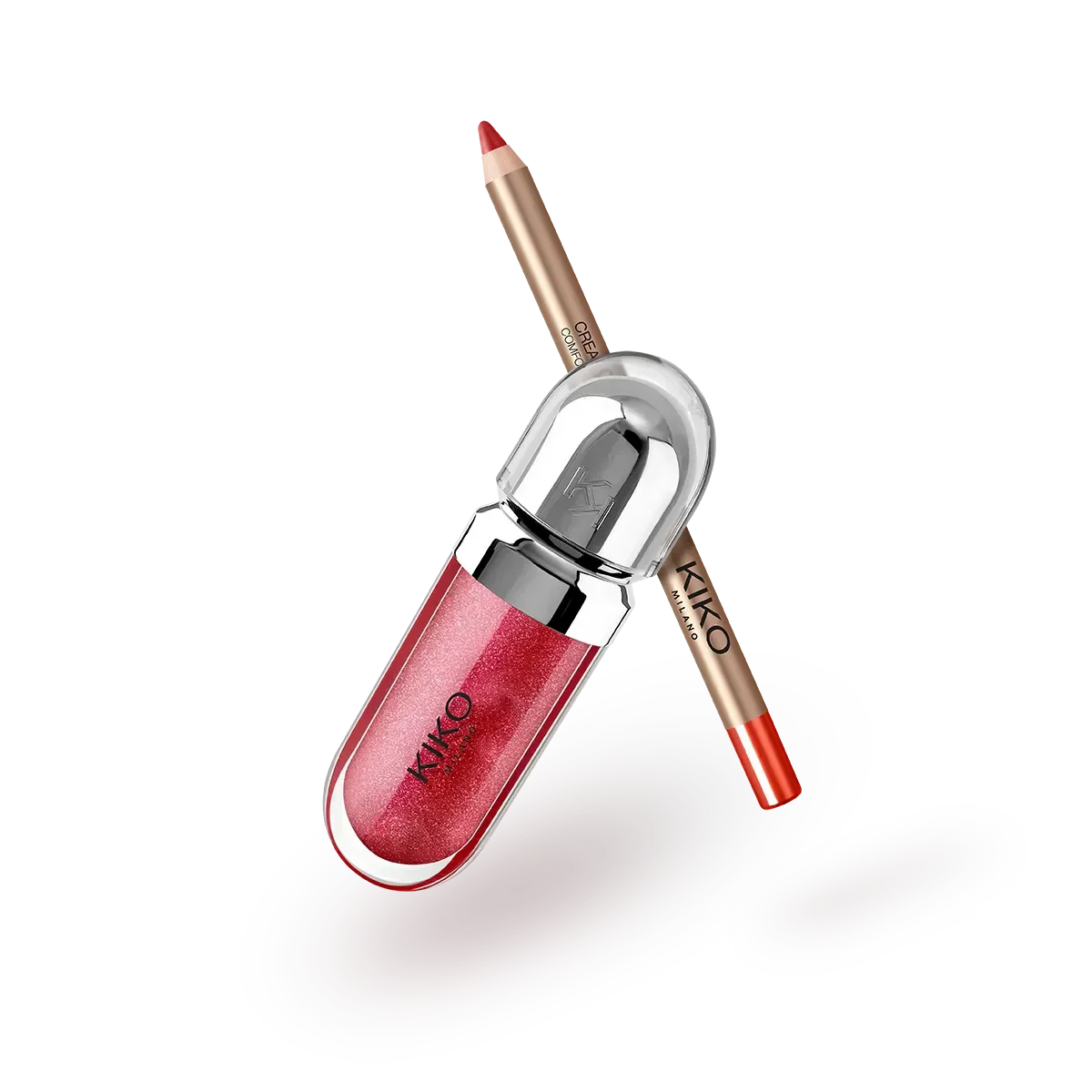Conjunto de oferta para lábios composto por um batom hidratante* combinado com um lápis de lábios cremoso, numa preciosa caixa de oferta.